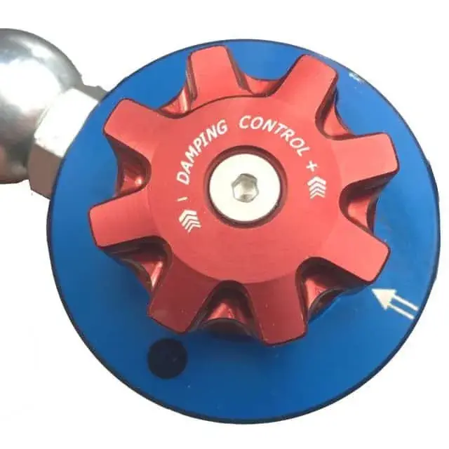 - 8 stage compression adjustment with a simple turn of the knob mounted on the remote reservoir