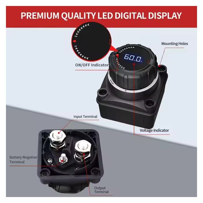 Battery Power & Winch Isolator Switch with Voltage Display 250A continuous at DC 12V, 300A for 30min