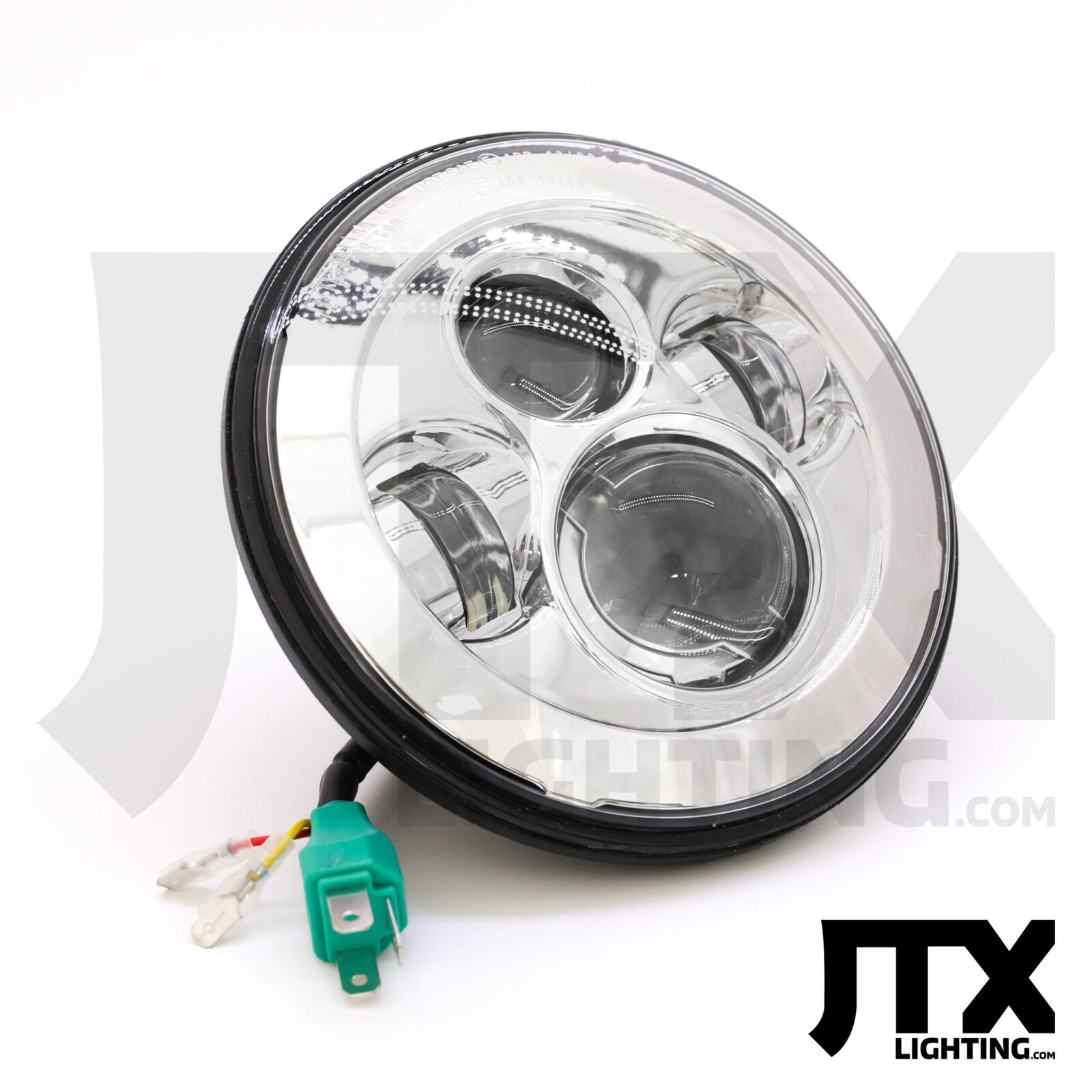 JTX Custom 7 LED Chrome headlights high beam/low beam White / Amber coloured halo ADR approved