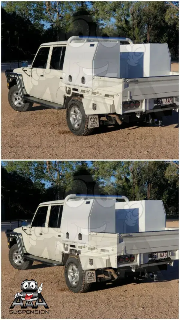 This is a very universal kit – the old holden 1 tonner and a V8 landcruiser ute with a big lift both run the same kit and just the length of brackets vary – Short, Medium and Tall. We have simplified your options with the correct length applied to each vehicle type. But if you have any doubts about how tall your vehicle sits like what suspension lift you might have etc then simply jack up the tow bar so the rear sits where you expect it to ride then measure underside of chassis to top of axle. Because we make our own brackets, we can also do custom builds if you have special requirements.