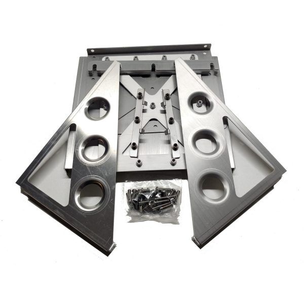 Made from 2mm Aluminium Lasercut and CNC folded all parts are either aluminium or stainless steel total weight of 2kg.