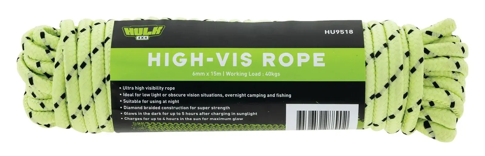 Hulk GLOW IN THE DARK ROPE (FLURO YELLOW) 6MM X 15M