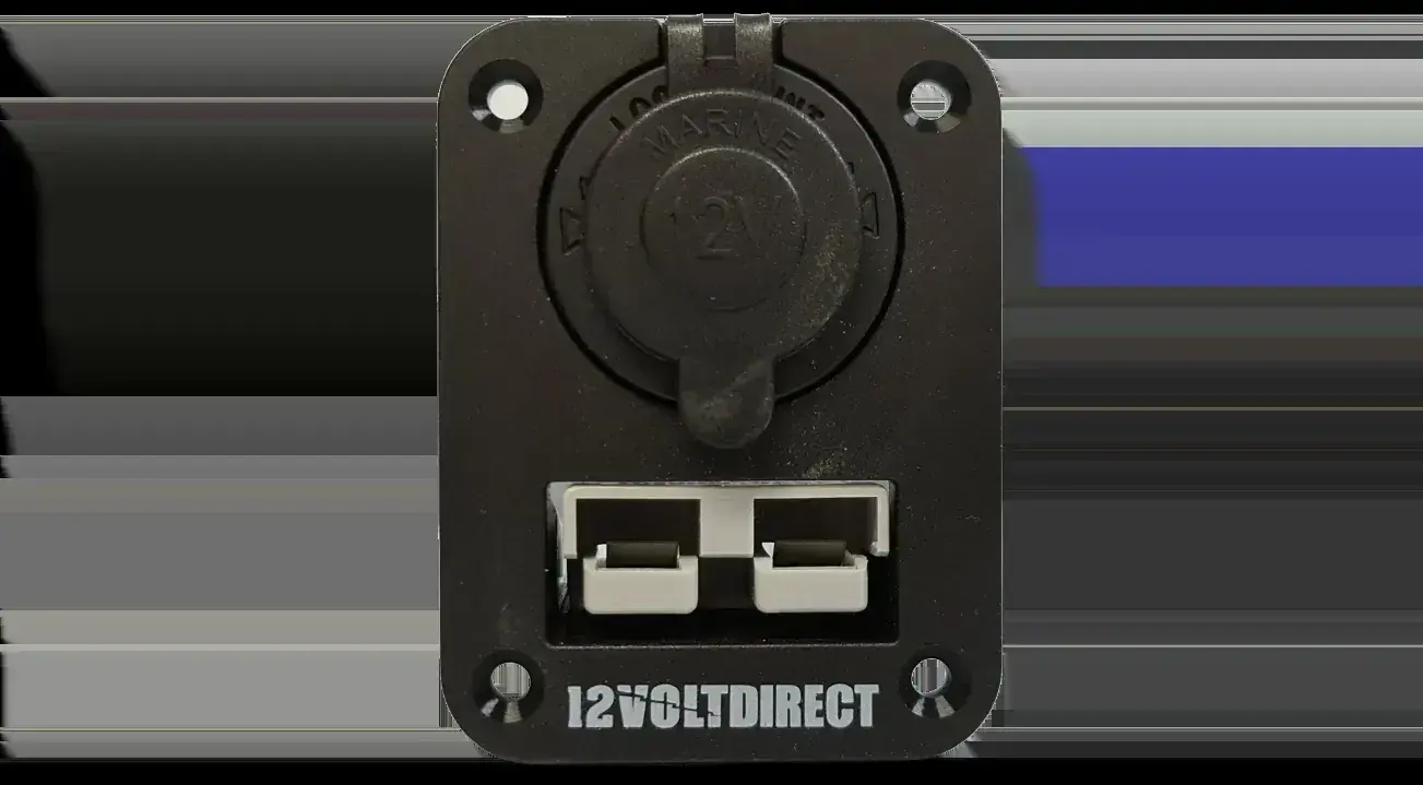 A flush mounting bracket with a recessed 50A Anderson connector and cigarette socket for mounting into trims and panels.