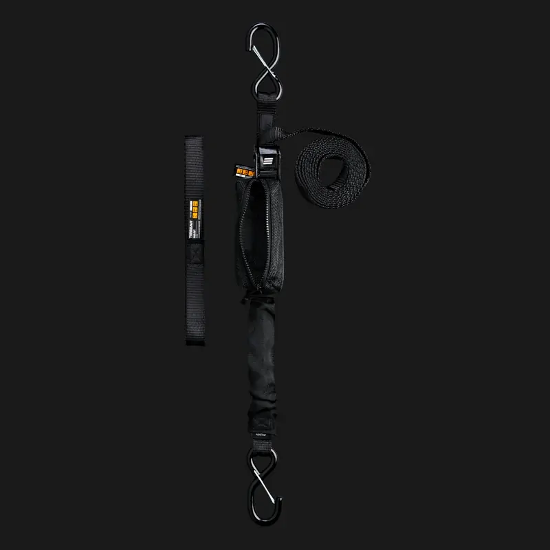Say goodbye to ratchet strap frustrations. The FlexStrap’s one-action tensioning system locks your load in place, while the metal spring absorbs shifts without loosening. Excess webbing? Sorted with the included net storage bag, keeping your gear streamlined and road-ready. Built to perform, wherever you go.