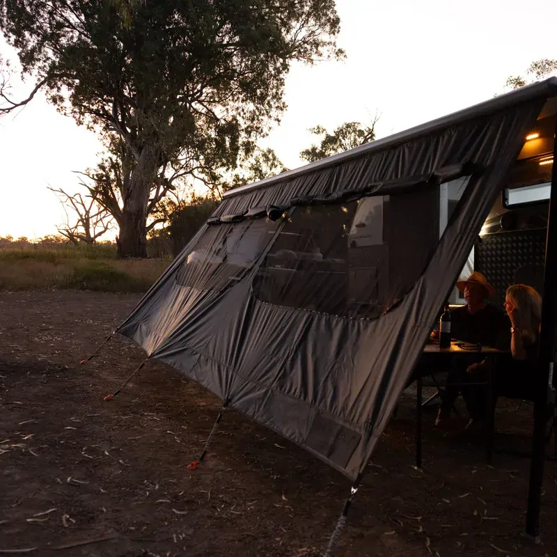 We get it, sometimes you just want a bit of space. Whether it’s blocking out the sun, wind or rain, hiding from the kids’ chaos or giving your caravan park neighbour that subtle cue, the Shield is here to make your camp feel more like home.